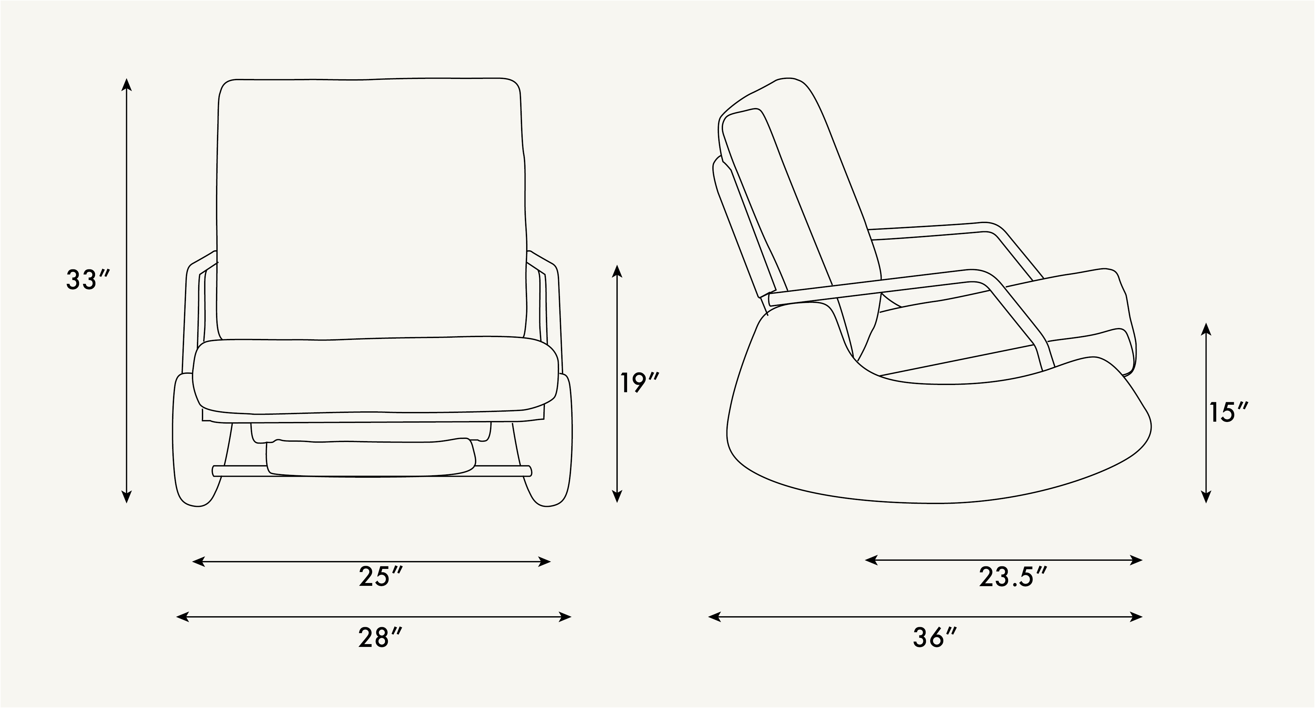 Seat Size: 25" W x 23"D x 15" H
