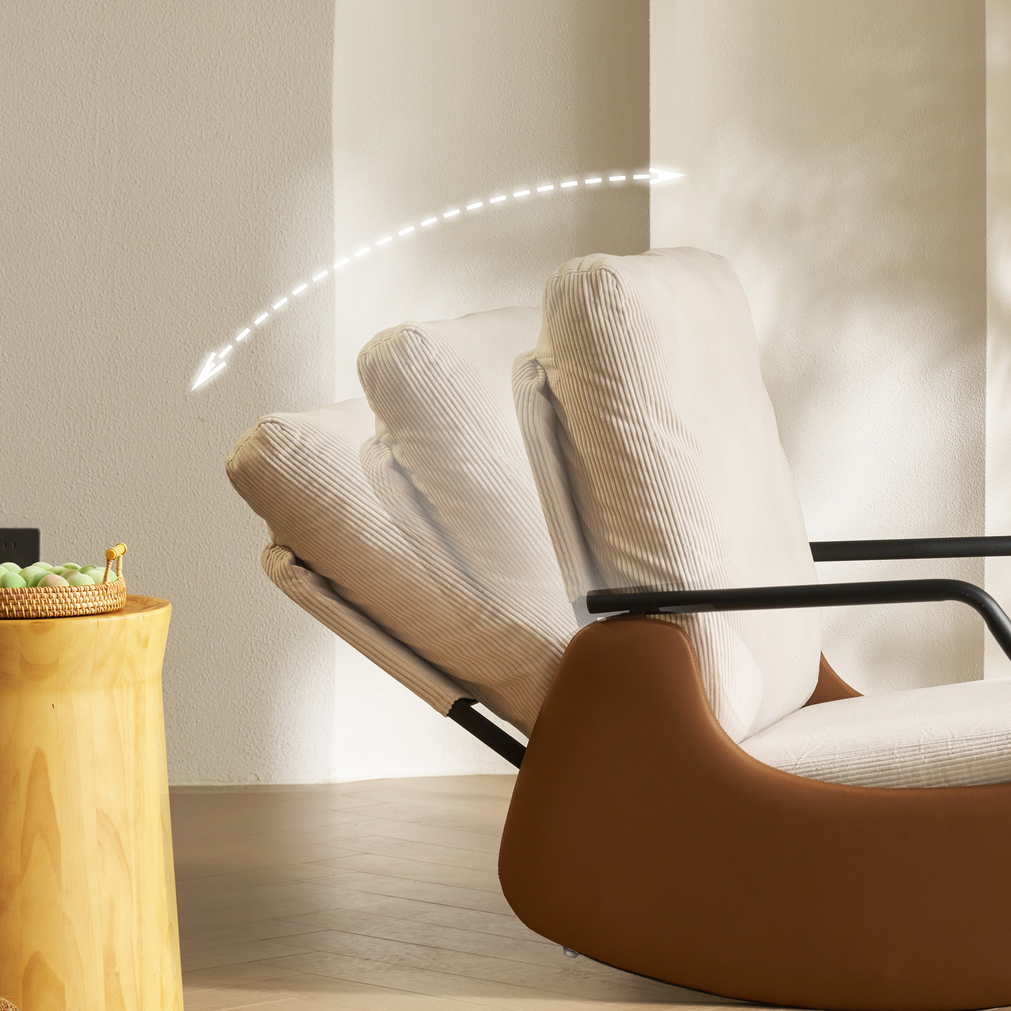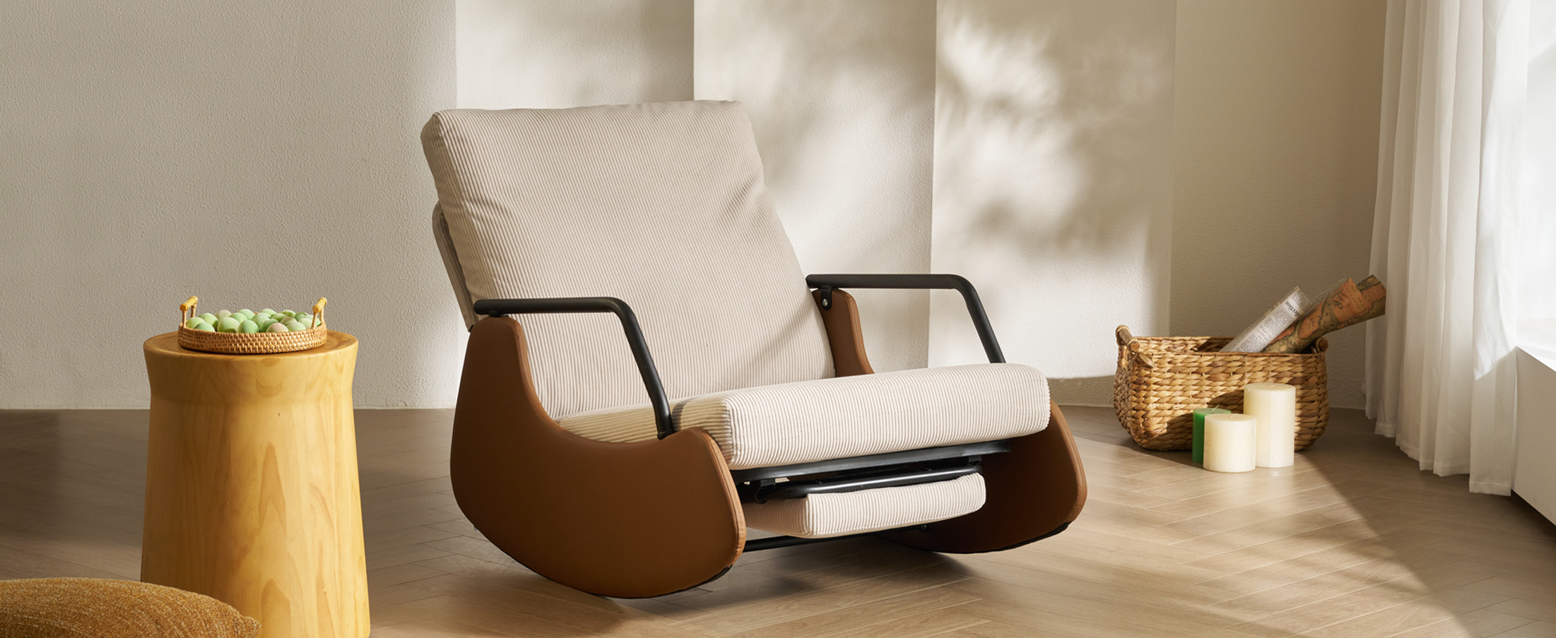 Durable Materials for Long-lasting Softness:Upholstered in soft striped chenille fabric over high-density elastic sponge, the seat and backrest deliver a plush, long-lasting comfort that complements the chair's dynamic rocking features.
