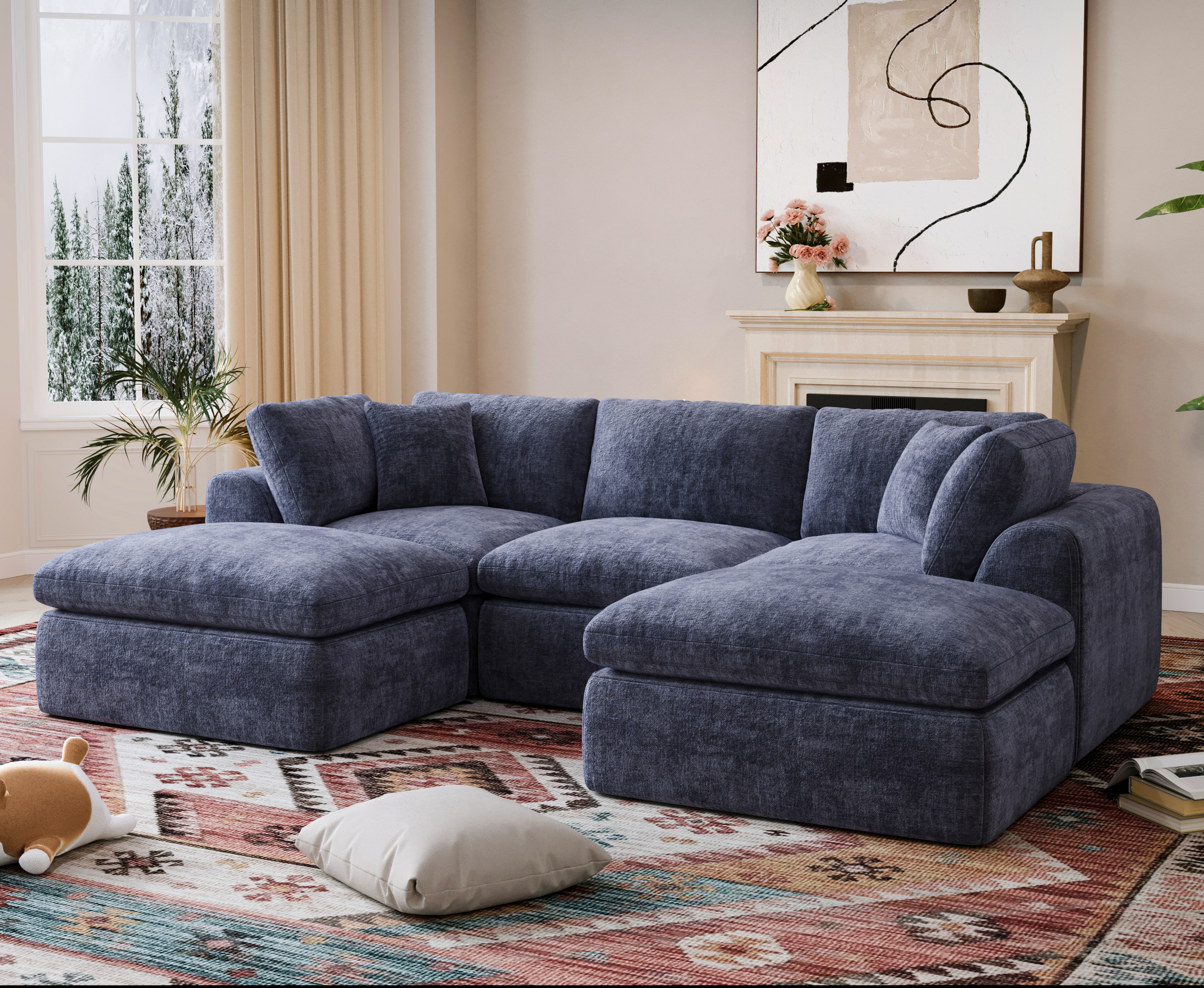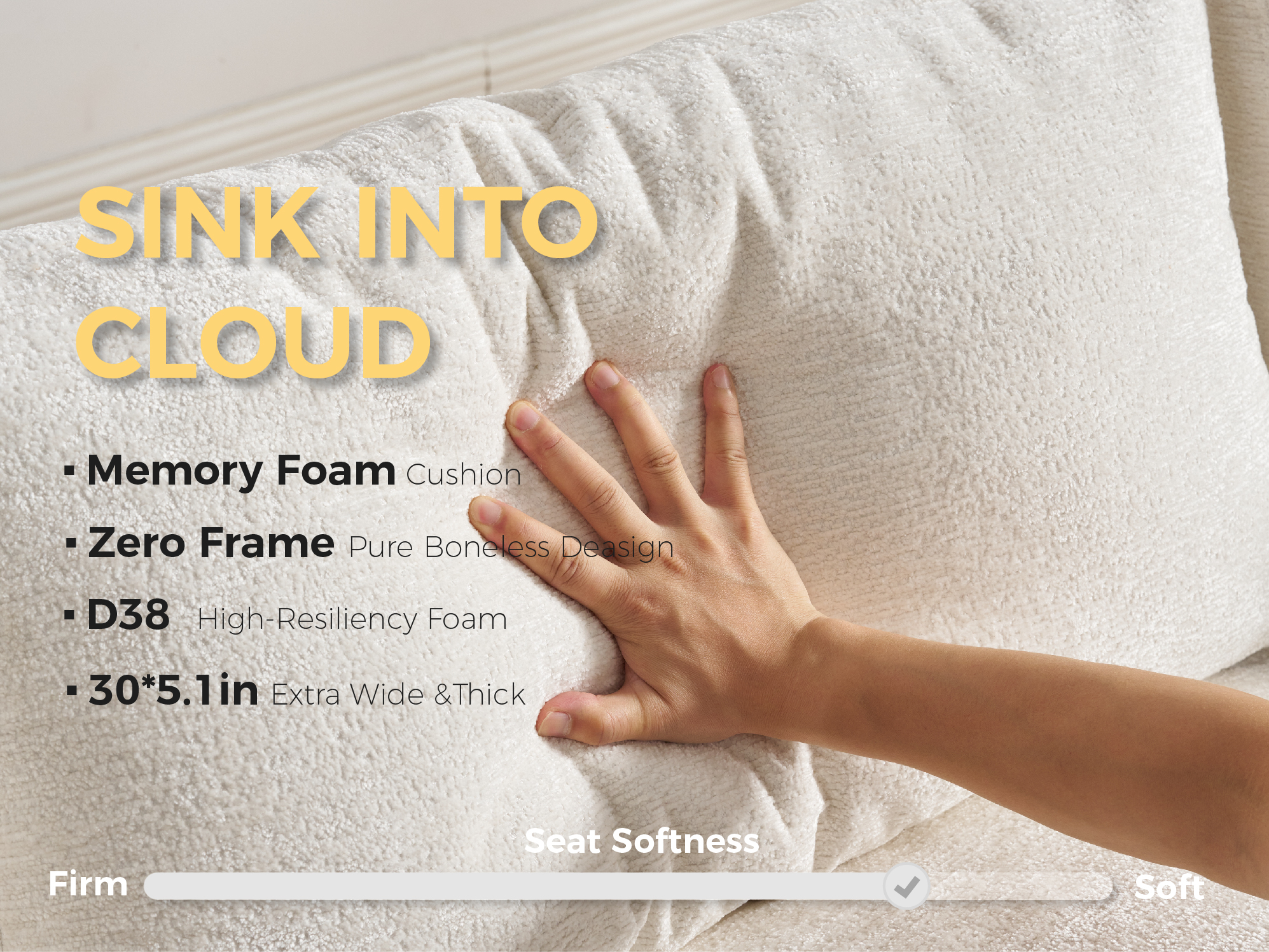 YS-01 Boneless Cloud Sectional Couch 3 Seats with 1 Ottoman